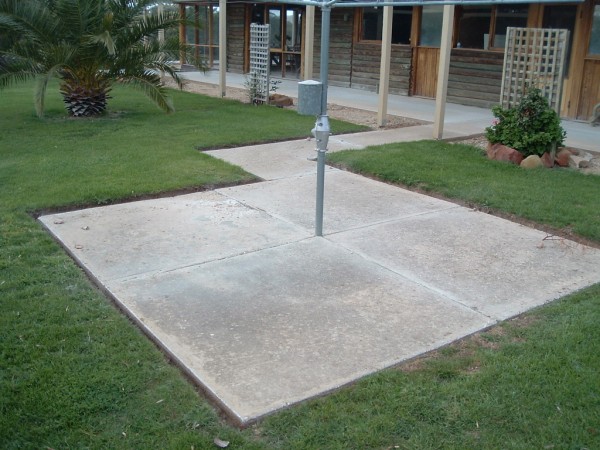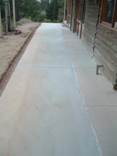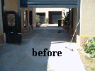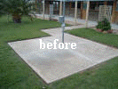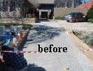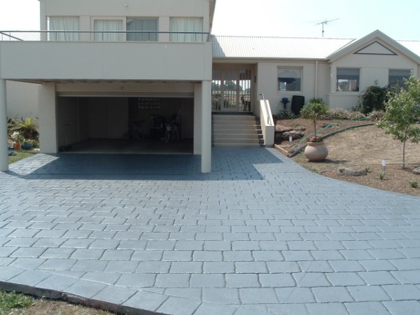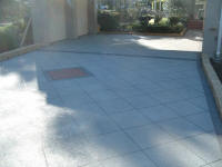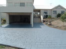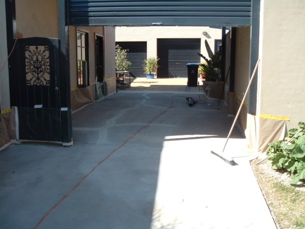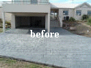 On this job the client only wanted a border using Cobblestone Header stencil in Heritage green, and he also wanted the newly laid concrete to blend into the old concrete. We did a few repairs and sprayed it with a neutral coloured base coat, then sprayed a light fleck over the whole job in Charcoal colour