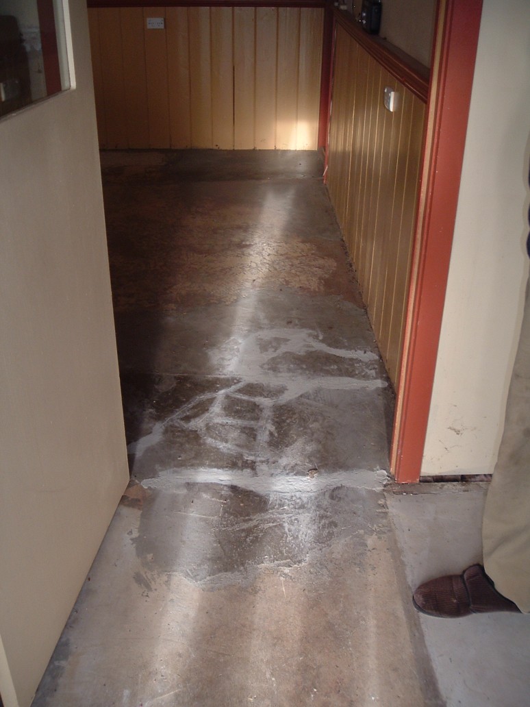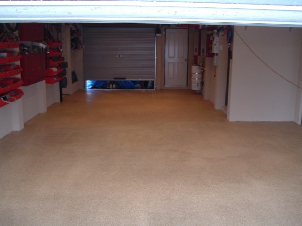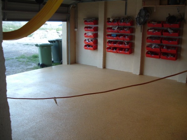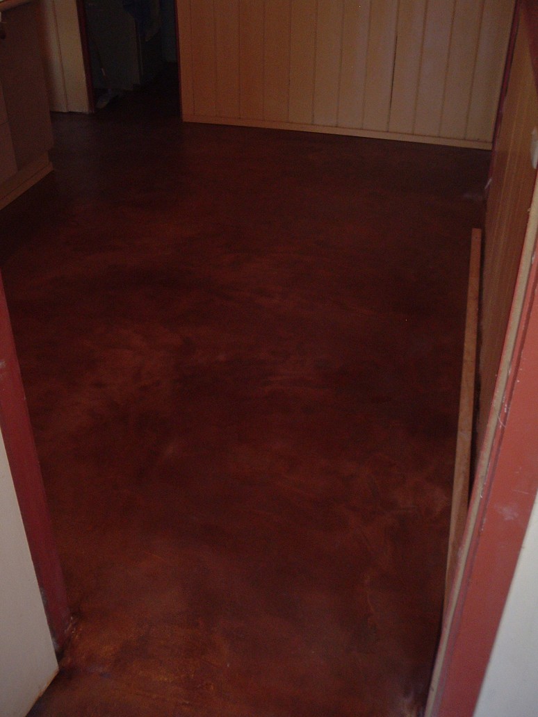 Base colour is French Grey with a main design of 500 x 500 custom taped tiles in Dark Terracotta Colour. Centrepiece logo was created using a custom made stencil, and sprayed using Charcoal colour, bricks around the centrepiece are in Sahara colour. Epoxy Flake FloorsGarage floor resurfaced with Epoxy Flake flooring. Clear Epoxy with Honeycomb themed Flakes, Protected by two coats of polyurethane. Acid StainingCottage Floor, existing concrete resurfaced and a combination of Weathered Terracotta and Mid Brown Acid stain applied, followed by 2 coats of water based epoxy. (i apologize for the picture quality... the actual job looks so much better)